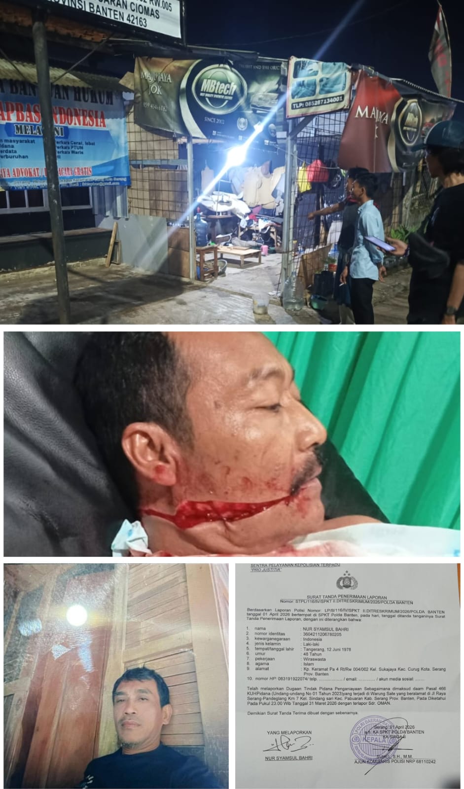 DetikXpress.id Serang – Nur Syamsul Bahri warga Kp. Keramat Rt 04 Rw 02 Kelurahan Sukajaya Kecamatan Curug Kabupaten Serang, menjadi korban penganiayaan oleh seseorang berinisal OM. Peristiwa tersebut menyebabkan korban mengalami luka robek dibagian leher dan pipi akibat sabetan senjata tajam pelaku.