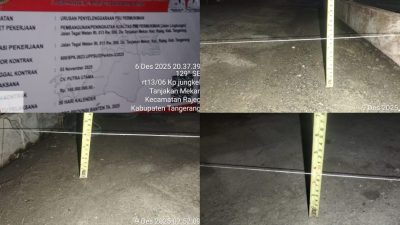 DetikXpress.id Tangerang – Proyek pembangunan turap Perkuatan Tebing Saluran Pembuang Salembaran di Kecamatan Kosambi, Kabupaten Tangerang, yang dikerjakan oleh CV HSN senilai Rp474.863.000 dari APBD TA 2025, mendapat teguran keras.